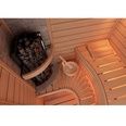 • Полукруглая форма печи и угловое расположение по максимуму экономят пространство в парилке.