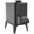 Печь изготовлена из серого чугуна с толщиной стенок 8 мм. Чугун обладает высокой теплопроводностью, буржуйка начинает отдавать тепло в помещение сразу после затопки. Мощности печи 13 кВт достаточно для отопления загородного дома площадью до 130 м2. Печь имеет герметичную топку и работает в режиме длительного горения с КПД 75%. Встроенные тепловентилятор (турбина) позволяет быстро нагнетать теплый воздух в помещение, увеличивая тепловую эффективность печи.